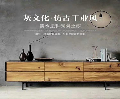 墻面水泥漆以極簡(jiǎn)灰色效果映入眼簾,打造個(gè)性化,高品質(zhì)的空間,逼真的藝術(shù)仿水泥效果,適用于不同基材,內(nèi)外墻均可,表面即平整光滑也可呈現(xiàn)其清水不一的自然反應(yīng)色,水泥漆是混凝土的最高級(jí)表達(dá)形式,它顯示的是一種最本質(zhì)的美感,體現(xiàn)的是”素面朝天”的品味。